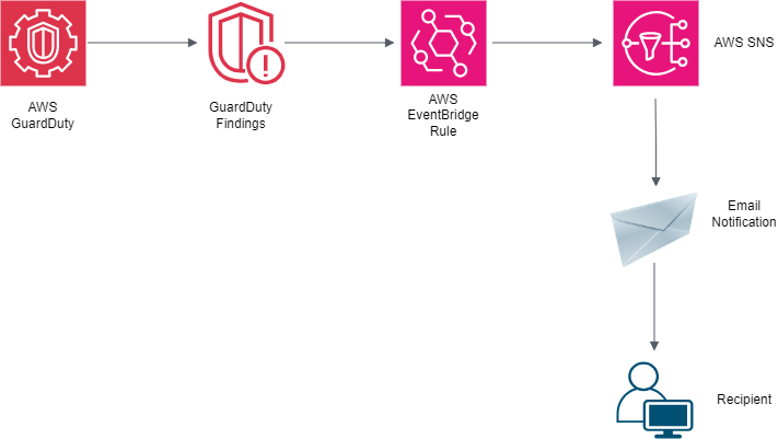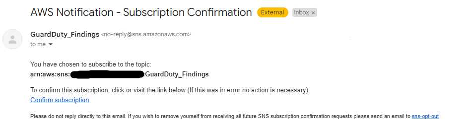 With this configuration, you will receive SNS email notifications for any medium to high GuardDuty findings. This ensures timely alerts, enabling you to take prompt action and eliminating the need for manual monitoring of GuardDuty alerts.