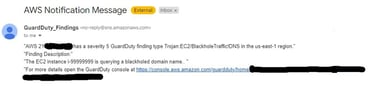 An example of such an alert is shown in the screenshot below for one of the GuardDuty findings.