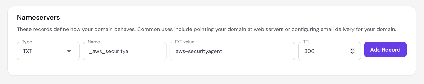 Value: aws-securityagent-domain-verification=<token>
