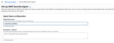 After deploying the vulnerable application, the next step is to configure AWS Security Agent to perform penetration testing against the application.