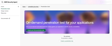 In this blog, the focus will specifically be on the penetration testing capability of AWS Security Agent. Penetration testing allows the service to simulate real-world attack scenarios against a running application in order to identify exploitable vulnerabilities.