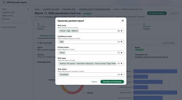 After the penetration test completed, the AWS Security Agent generated a detailed report outlining the vulnerabilities it discovered in the application. The report provides insights into potential security weaknesses along with recommendations for remediation.