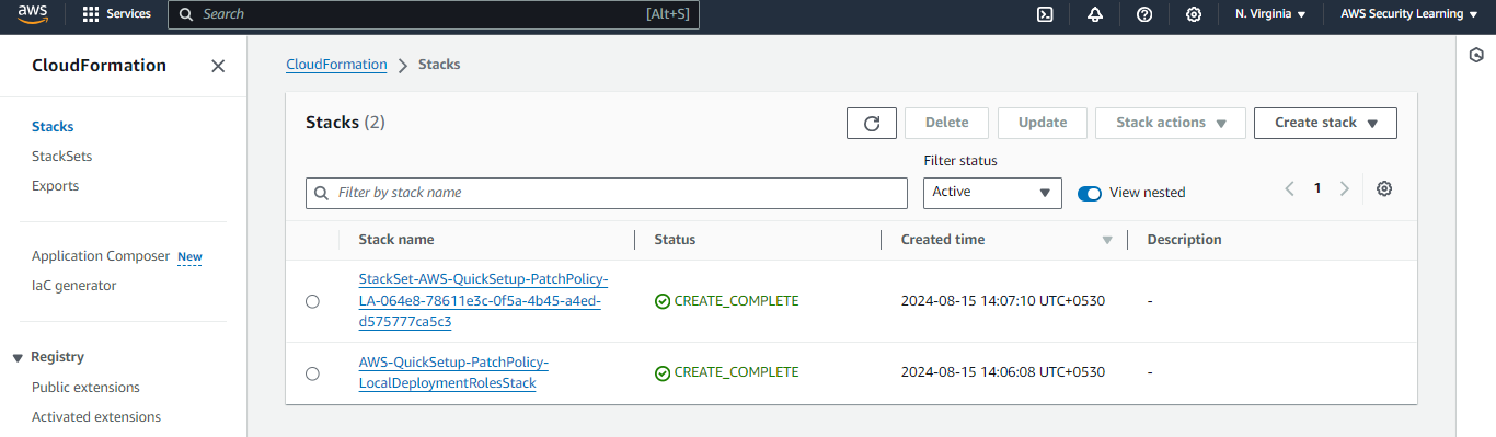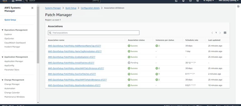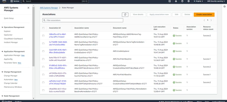 Here, Quick Setup has used CloudFormation to create the respective associations in State Manager. This ensures that the patching process is automated and managed consistently across your targeted instances, following the configurations you've set.