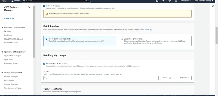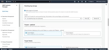 Step 6: Select the S3 bucket where patching logs will be stored. This ensures that all patching activities are properly logged and can be accessed for future auditing or troubleshooting.