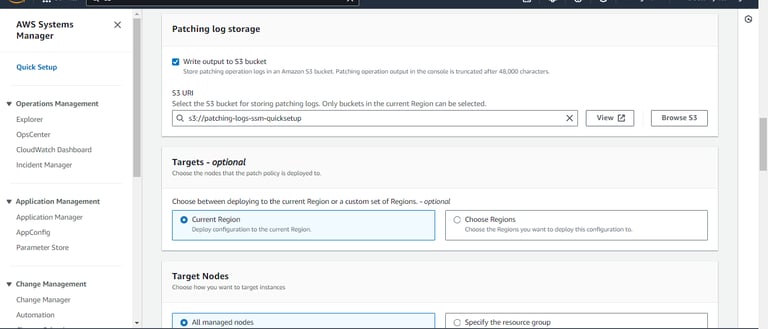 This blog provides a general guide for configuring AWS Patch Manager using Quick Setup in AWS Systems Manager. It is important to note that each AWS environment and patch management requirement may vary. While this setup can streamline patch management and improve compliance, it is essential to review and customize the configuration according to your specific needs and operational policies.