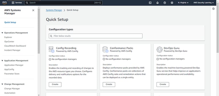 Step 1: Start by logging into the AWS Management Console using your credentials. Once you're in, navigate to AWS Systems Manager. From the Systems Manager dashboard, locate and select Quick Setup.